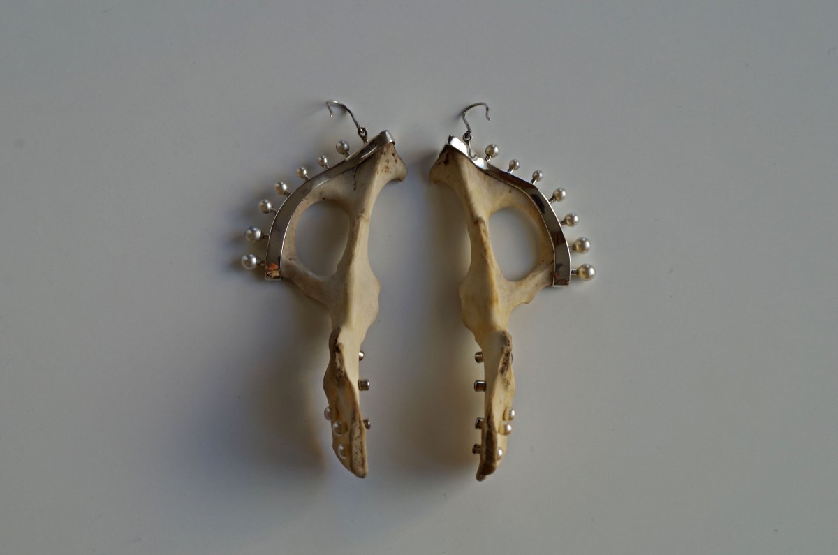 Materiál : Stříbro Ag , Pánevní kost , umělé perly , syntetické kameny